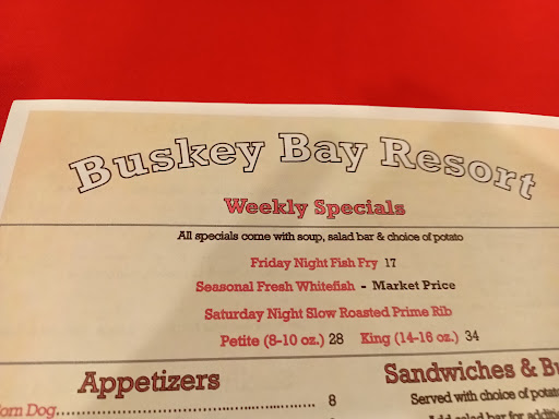 Buskey Bay Resort Menu